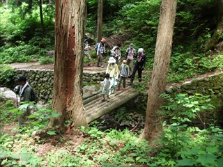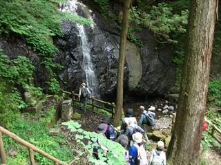 布滝の前で記念撮影 山の中は、まさに森林浴