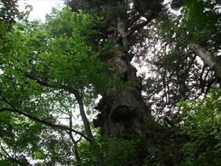 丸太の橋がお出迎え 頂上の直前には大モミの木が・・でかっ
