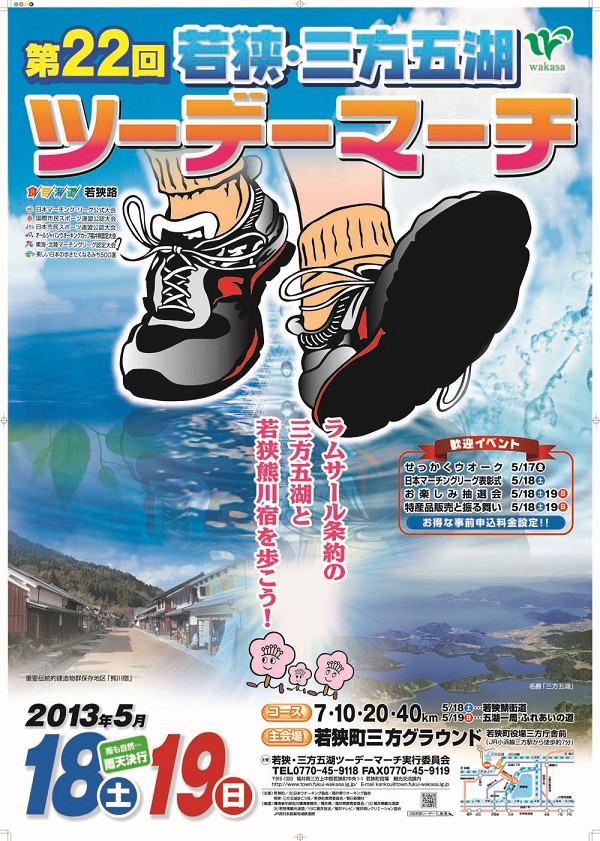第22回若狭・三方五湖ツーデーマーチを5月18日(土)、19日(日)が開催されますよ。