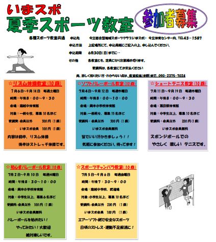 7月からスポーツ教室が始まります。